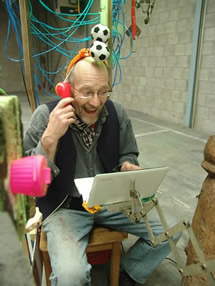 Wim Vonk teaches at the Gerrit Rietveld Academy. He received his own education also at the Rietveld, where he studied painting and drawing. He prolonged his studies at the Grafik Skolan Kungliga Akademien för de fria Konsterna in Stockholm. In his current work he assembles objects trouvés and tidbits, recreating these into installations. many of them able of motion and productive of sound. Over the past two years he has incorporated into his installations African sculptures and masks from the collection of Klaas de Jonge. De Jonge studied anthropology and sociology in Amsterdam and Paris, was a human rights activist in the 80’s against Apartheid in South Africa and produced global attention by being arrested and by his refuge into the Dutch Ambassey in Pretoria, where he stayed in exile for almost 2 years.