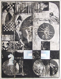 In the warehouse in Weesp everything is let loose: there are various mills to be seen: hanging, attatched to the walls, fixed to a former work bench, to the ground, to a filing cabinet... When Klaas de Jonge arrived with his unique collection of African Art and craft a very real idea of music became apparent: every African artifact, every found object, whether inherited or simply discovered found a new existence. A continuous stream of images large and small, funny or with a darker tone... (even a perished young bird found its given place)... together with a golden chain from Marja and a toy tractor from Tom and the front door of the next door neighbour, The drawingpin from Sweden, and of course a random keyboard. Everything has its specific place, and it all fits like a glove, everything communicates or talks with one another... then the scene judders... then the creation moves and everything tumbles upon itself....now it works better,